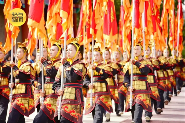 今年公祭典禮以“鑄牢中華民族共同體意識(shí) 奮進(jìn)中國(guó)式現(xiàn)代化新征程”為主題,共有九項(xiàng)儀程:第一項(xiàng),全體肅立、擊鼓鳴鐘;第二項(xiàng),唱《黃帝頌》;第三項(xiàng),敬獻(xiàn)花籃;第四項(xiàng),恭讀祭文;第五項(xiàng),向軒轅黃帝像行三鞠躬禮;第六項(xiàng),樂舞告祭;第七項(xiàng),龍飛中華;第八項(xiàng),瞻仰軒轅殿,拜謁黃帝陵;第九項(xiàng),種植橋山柏。