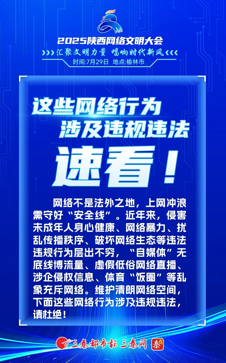 2025陜西網(wǎng)絡(luò)文明大會(huì)丨這些網(wǎng)絡(luò)行為涉及違規(guī)違法,速看!