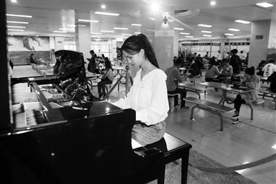 大學(xué)食堂里可彈鋼琴,學(xué)生們稱文藝范十足