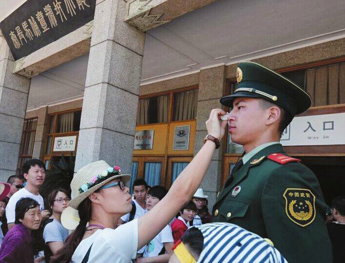 女游客為站崗武警擦汗引網(wǎng)友點贊