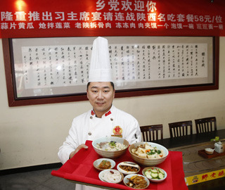 2014年2月19日,西安昆明路,豐慶宮推出習(xí)主席請(qǐng)連戰(zhàn)吃飯的套餐,四小份涼菜,肉夾饃、biang biang 面和羊肉泡饃。圖片來(lái)源:CFP視覺(jué)中國(guó)據(jù)報(bào)道,2月18日,中共中……