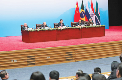習(xí)近平最后指出,在金磚合作新的10年開啟之際,祝愿工商理事會和新開發(fā)銀行勠力同心,為金磚合作的美好明天作出新貢獻(xiàn)。
