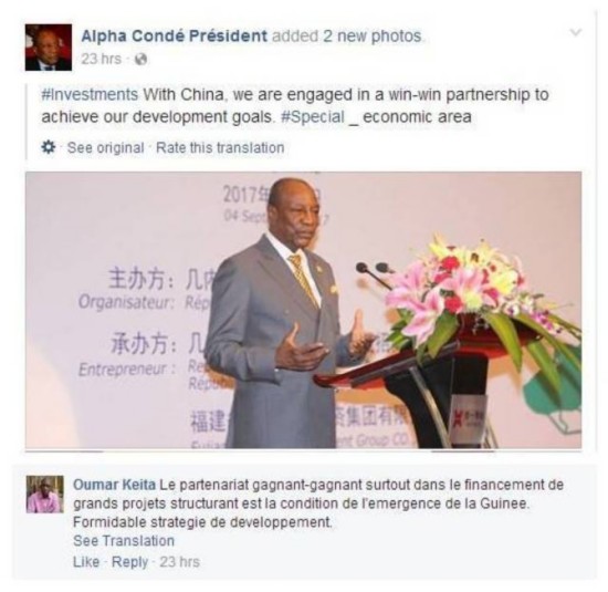 年近八旬的幾內(nèi)亞總統(tǒng)孔戴也在臉譜上記錄下自己的中國(guó)之行。他在一條貼文中寫道:“我們與中國(guó)開展雙贏合作,以實(shí)現(xiàn)我們的發(fā)展目標(biāo)”。