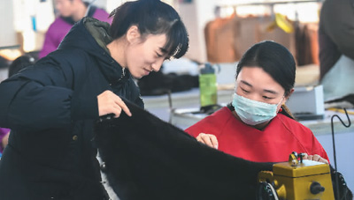 12月8日,河北省棗強(qiáng)縣某服裝企業(yè)工作人員正在工作中。目前,該縣年出口裘皮服裝服飾300余萬(wàn)件。fDs安康新聞網(wǎng)