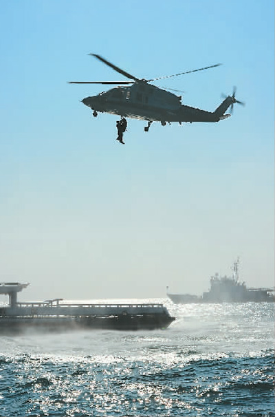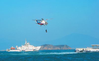 12月19日,海南海事局和南海救助局、南海第一救助飛行隊(duì)在海南三亞以南附近海域開(kāi)展首次?章(lián)合巡航。此次巡航旨在整合海事巡航執(zhí)法力量和專(zhuān)業(yè)救助力量,提升專(zhuān)業(yè)救助飛行力量使用效能和海事巡航執(zhí)法現(xiàn)代化水平。圖為參加聯(lián)合巡航的直升機(jī)進(jìn)行救援演練。YFr安康新聞網(wǎng)