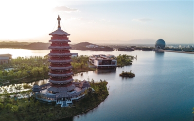 | 北京懷柔雁棲湖雁棲塔。“一帶一路”國(guó)際合作高峰論壇于2017年5月14日至15日在北京舉行,懷柔雁棲湖國(guó)際會(huì)議中心是此次高峰論壇的主會(huì)場(chǎng)。 |