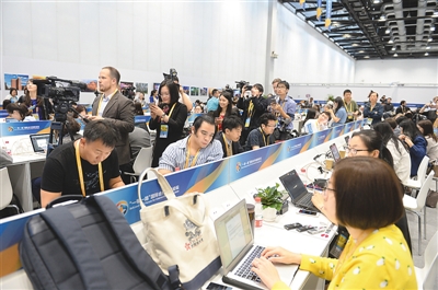 | “一帶一路”國(guó)際合作高峰論壇會(huì)場(chǎng)外。 |
