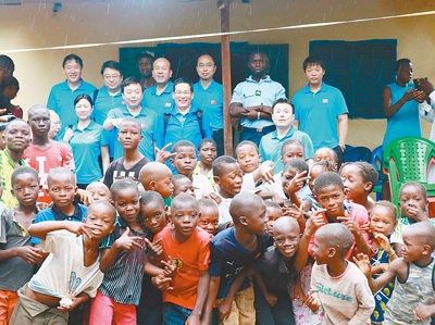 | 醫(yī)療隊(duì)慰問在與埃博拉病毒斗爭(zhēng)中犧牲的幾內(nèi)亞醫(yī)護(hù)人員家屬。 |