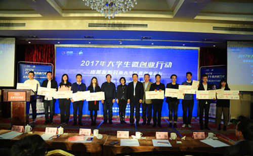 2017年大學(xué)生微創(chuàng)業(yè)行動金獎項目代表合影