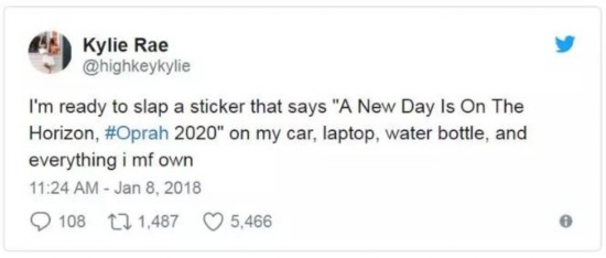 Kylie Rae:我已經(jīng)準(zhǔn)備好在我的車、電腦、水瓶和我所有物品上貼上標(biāo)簽:“A New Day Is On The Horizon,#奧普拉2020”。