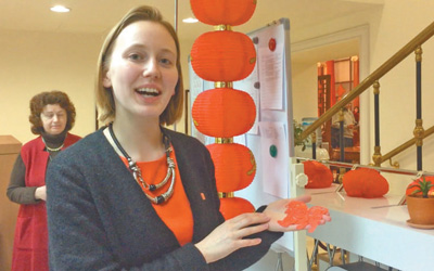 她非常喜歡那些“很中國”的東西!岸鼗偷娘w天舞太美了!薄凹艏埗嗥婷畎。话鸭舻,就能剪出那么好看的圖案來。”同事在中國老師的指導(dǎo)下學(xué)會(huì)了剪一只狗,讓她羨慕不已。