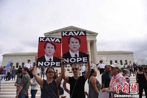 當?shù)貢r間10月6日,美國民眾在華盛頓的最高法院門前集會,反對卡瓦諾擔任最高法院大法官。當天,美國參議院最終投票確認卡瓦諾出任聯(lián)邦最高法院大法官。 中新社記者 鄧敏 攝FW8安康新聞網(wǎng)