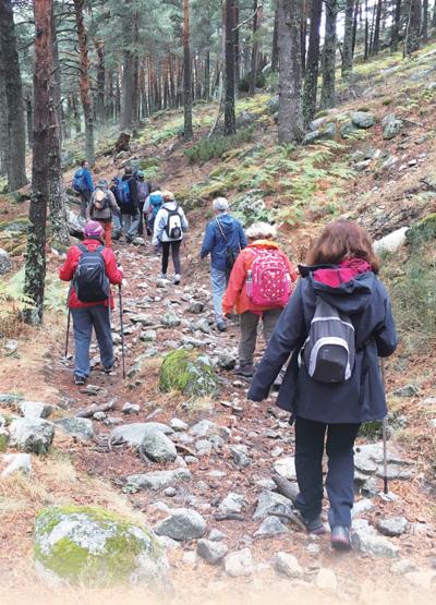 在西班牙瓜達(dá)拉馬國家公園徒步游覽的游客。