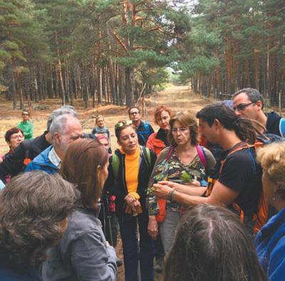 在西班牙瓜達(dá)拉馬國家公園,導(dǎo)游安赫爾不時停下腳步,為游客講解沿途遇到的各種動植物的種類、特性等。