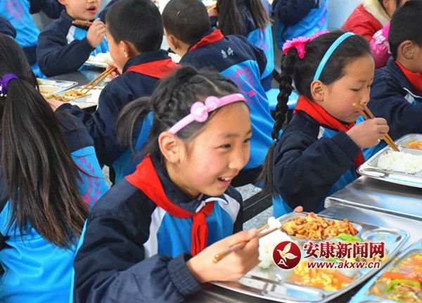 孩子們在新食堂里愉快地品嘗著第一頓營養(yǎng)餐zCB安康新聞網(wǎng)
