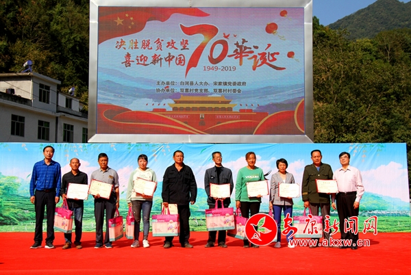 活動(dòng)現(xiàn)場(chǎng),十堰市中醫(yī)醫(yī)院向雙喜村貧困大學(xué)生捐贈(zèng)了助學(xué)金;播放了倉(cāng)上鎮(zhèn)裴家村貧困群眾柯昌全、冷水鎮(zhèn)三院村貧困群眾巴文成的脫貧事跡;表彰了雙喜村愛(ài)崗敬業(yè)、孝老愛(ài)親模范,脫貧致富、產(chǎn)業(yè)發(fā)展、環(huán)境衛(wèi)生標(biāo)兵;圍繞脫貧攻堅(jiān)、掃黑除惡專(zhuān)項(xiàng)斗爭(zhēng),開(kāi)展了有獎(jiǎng)知識(shí)競(jìng)答。