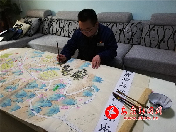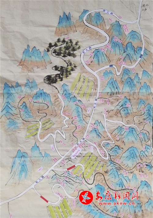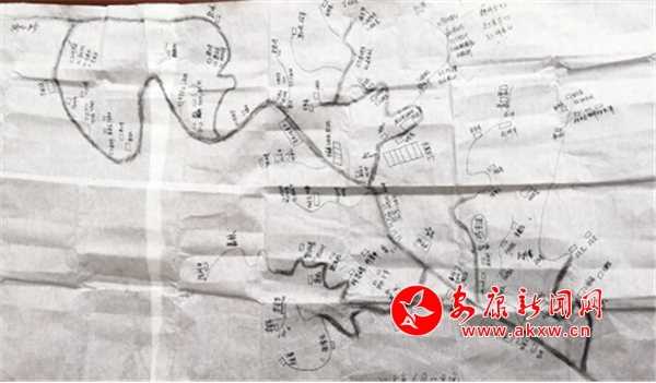 在一張大白紙上,左士霆用鉛筆勾勒出安樂村的主要地形和道路。夜深人靜時(shí),他又一戶戶標(biāo)記出當(dāng)天走訪的貧困戶住址。駐村以來,他走遍了安樂村的溝溝壑壑,將村里主要路線、地勢地形、貧困戶的居住點(diǎn)勾勒連接成片,繪制成“地圖”,整個(gè)村情一目了然。