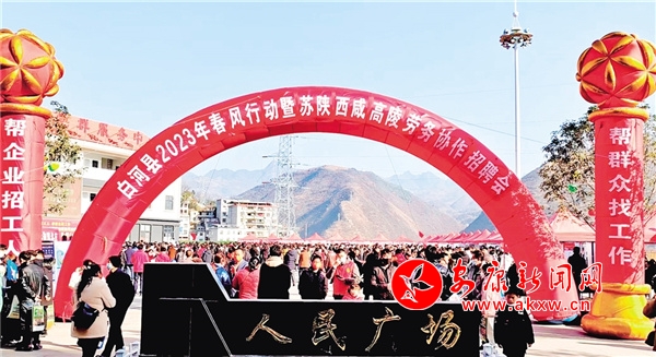 白河縣2023年春風(fēng)行動暨蘇陜西咸高陵勞務(wù)協(xié)作招聘會在縣人民廣場舉行。