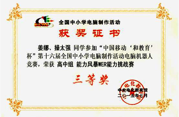 “中國移動‘和教育’杯”第十六屆全國中小學電腦制作活動結(jié)果日前揭曉,白河高級中學學生姜娜和操太強在高中組能力風暴WER能力挑戰(zhàn)賽——&……