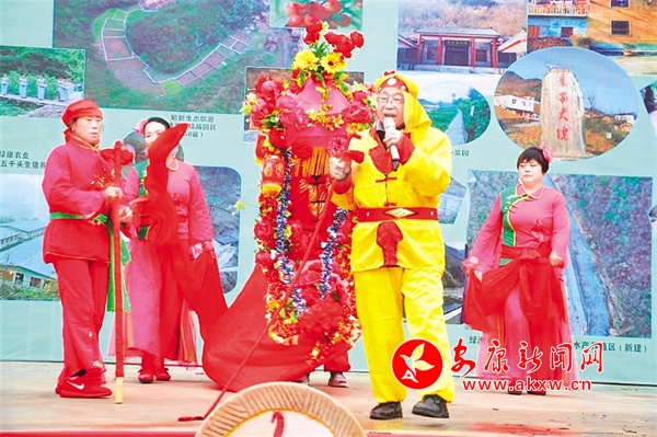 “黨的富民政策喲好哎!幸福的日子我們都趕上哎了喲!”“大美倉上好風(fēng)哎光哎,桃花紅來菜花喲黃哎……”這種以景作詞、隨口編唱、充滿濃郁鄉(xiāng)土文化氣息的“花鼓……