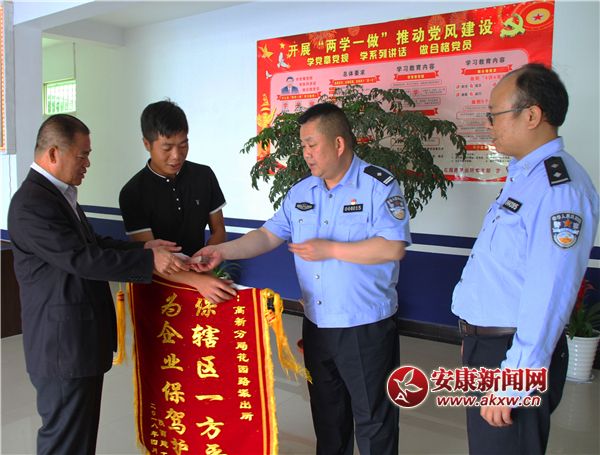 安康新聞網(wǎng)訊(記者 張喬 通訊員 羅延炎 )5月8日上午,在高新分局花園路派出所的大廳里,來(lái)自陜建安康城區(qū)環(huán)城干道江北段建設(shè)工程項(xiàng)目部的負(fù)責(zé)人為感謝花園路派出所民警認(rèn)真的工作態(tài)度和為企業(yè)保駕護(hù)航精神,特送來(lái)一面書(shū)寫(xiě)“保轄區(qū)一方平安,為企業(yè)保駕護(hù)航”的錦旗,以表示對(duì)派出所民警工作的肯定和褒揚(yáng)。