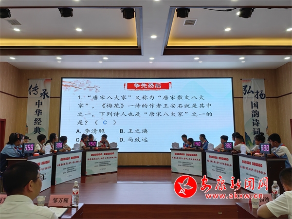 本網(wǎng)訊(通訊員 王宗濤)5月30日,安康高新區(qū)“弘揚(yáng)國韻詩詞 傳承孝義文化”第三屆中小學(xué)生詩詞大會(huì)決賽在高新區(qū)第四小學(xué)舉行。全區(qū)各中小學(xué)校長、學(xué)生代表110余人到場(chǎng)觀摩,活動(dòng)通過微信視頻號(hào)同步直播,2萬余名觀眾在線觀看比賽,一起重溫那些歷久彌新的經(jīng)典,領(lǐng)略中國古詩詞的魅力。