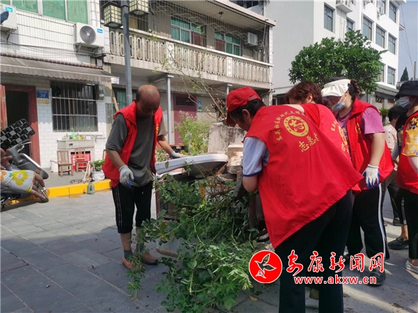 在北正街,包聯(lián)科室衛(wèi)健辦、武裝部工作人員身著“紅馬甲”,正在清理街邊積存的渣土和雜物,大家克服困難、相互配合、干勁十足,盡管天氣炎熱,汗水浸濕了衣背,工作人員們依然發(fā)揮不怕臟、不怕累的奉獻(xiàn)精神,耕耘著自己的“責(zé)任田”。