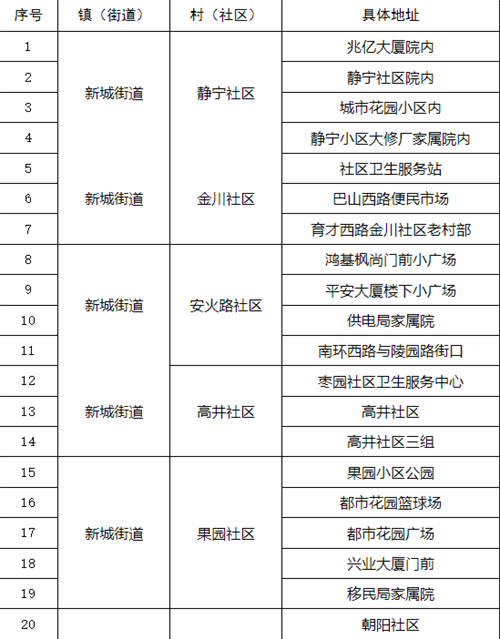 漢濱區(qū)中心城區(qū)全員核酸檢測(cè)采樣點(diǎn)一覽表