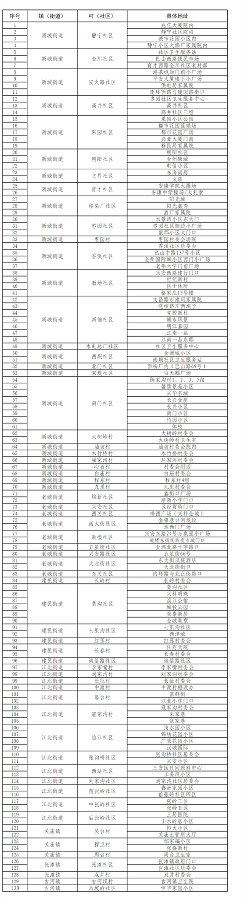 共設(shè)置130個采樣點(見附件),由各街道辦、鎮(zhèn)政府統(tǒng)一安排采樣點設(shè)置、人員組織、秩序維護(hù),檢測對象按照街道辦和鎮(zhèn)政府要求,分時段有序到指定地點進(jìn)行采樣,避免人員聚集。