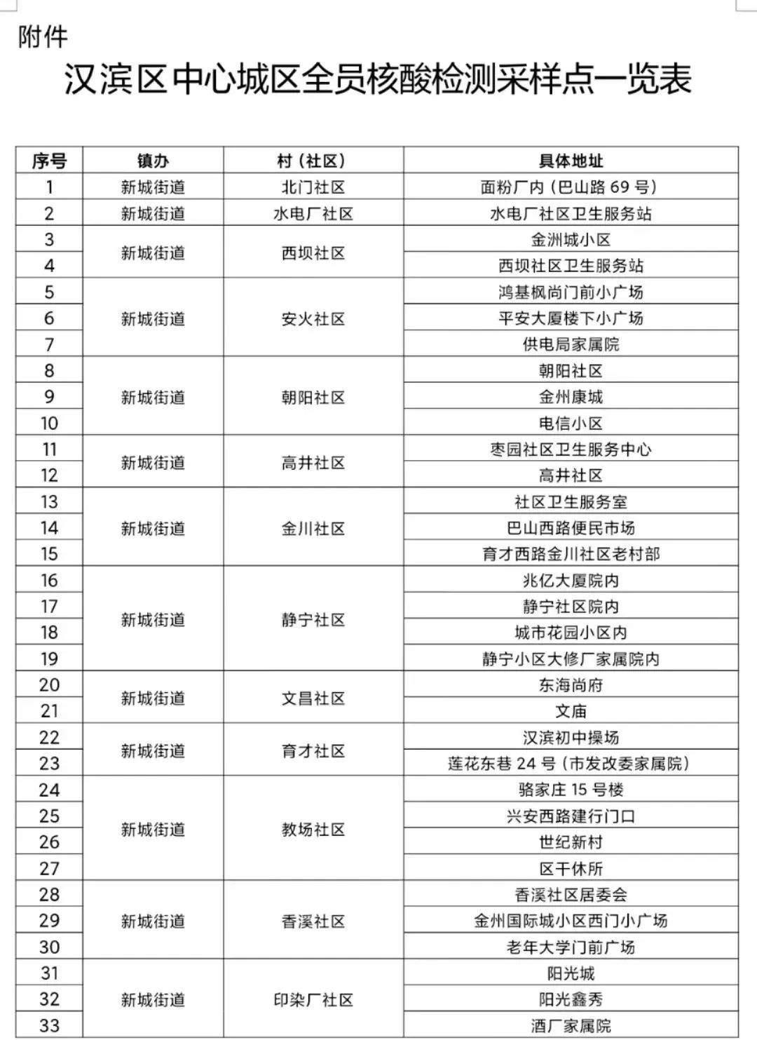 漢濱區(qū)老城街道、建民街道、新城街道、江北街道及關(guān)廟鎮(zhèn)、吉河鎮(zhèn)中心城區(qū)范圍(具體見(jiàn)附件所列村、社區(qū))常住和流動(dòng)人員一律參加核酸檢測(cè)。