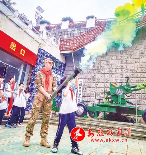 在國防教育基地講解員的解說下,隊員們參觀了國防教育基地的老物件博物館,看著先輩留下來的紅色文物,小隊員們懷著敬畏的心一邊參觀一邊提問。面對隊員們的熱情提問,講解員都一一進行了回答。