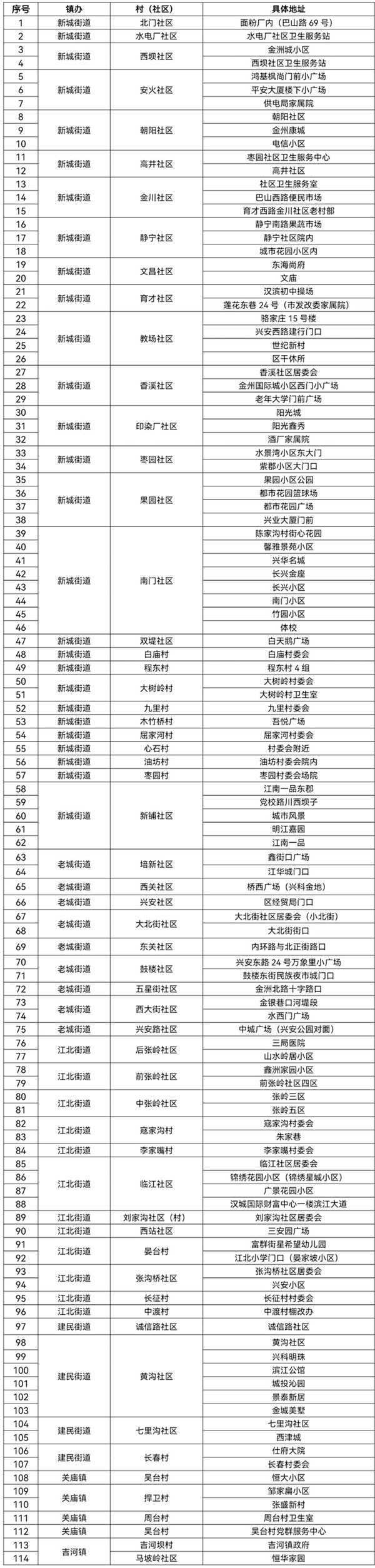 共設置114個采樣點(見附件),由各街道、鎮(zhèn)政府統(tǒng)一安排采樣點設置、人員組織、秩序維護。檢測對象按照街道和鎮(zhèn)政府要求,分時段有序到指定地點進行采樣,避免人員聚集。