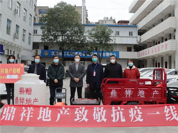 疫情無情人有情,關(guān)鍵時刻顯擔(dān)當(dāng),12月1日下午,鼎祥房地產(chǎn)開發(fā)有限公司為江北街道送來一整套價值2萬元的消殺物資——發(fā)電機(jī)一臺、洗車機(jī)一臺、電動三輪車一輛、噴灑水桶一個,以實(shí)際行動支援防疫一線、踐行社會責(zé)任。