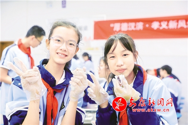 “喜迎中秋佳節(jié),我有幸參加此次活動(dòng),使我了解了月餅的做法,也感受到了團(tuán)結(jié)的力量。月餅的形狀體現(xiàn)了中秋節(jié)團(tuán)圓的寓意,月餅上印刻的‘漢濱初中’等字樣也體現(xiàn)了漢濱初中學(xué)子的優(yōu)良風(fēng)貌。”八年級(jí)學(xué)生陳岳琳說(shuō)。