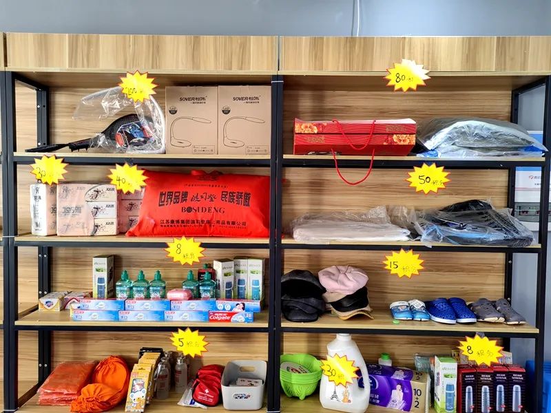 走進江北街道張溝橋社區(qū)新時代文明實踐站,擺放著一排特殊的貨架,貨架上抽紙、牙膏、洗手液等生活用品應有盡有。不同的是,這些物品不是直接售賣,而是以積分的形式兌換。每類物品的下方,都相應貼著一張小紙片,上面標注著這些物品的積分價格,香皂8積分、抽紙40積分......志愿者們根據(jù)參加志愿服務活動時長獲得累計積分就可以免費兌換心儀物品。