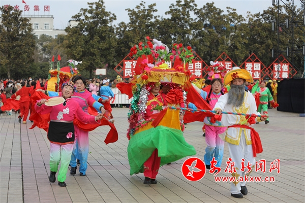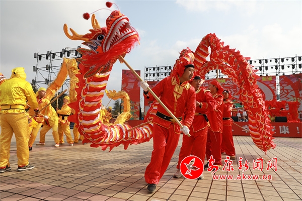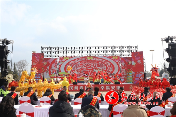 在金州廣場,身著各色演出服裝的演出隊伍早早就來到了現(xiàn)場為表演做準備,隨著一聲鑼鼓敲響,開場舞蹈《盛世歡歌》拉開活動序幕,花鼓表演唱《花為媒》、女聲合唱《火火的中國》、少兒舞蹈《百花舞》、戲曲聯(lián)唱《新春納福唱二黃》、漢調(diào)二黃歌舞《非遺賀新春》等節(jié)目陸續(xù)上演,營造起了濃濃的節(jié)日氛圍。演員們踏著喜慶的鼓點,和著歡快的節(jié)拍舞動起來,現(xiàn)場彩龍飛舞,雄獅翻騰,盡顯傳統(tǒng)民俗文化魅力。市民們大飽眼福,紛紛用鏡頭記錄下了各種精彩瞬間。