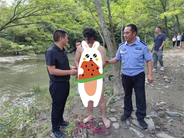 到達現(xiàn)場后,發(fā)現(xiàn)受困男子已被急流沖在河中樹杈里動彈不得,且因困水受驚嚇,已經(jīng)出現(xiàn)脫力、手腳發(fā)軟現(xiàn)象,情況緊急,程加玉顧不得多想,就和旁邊的熱心群眾一起迅速脫衣下水,以自身之力托起群眾之身,幫助他抓緊繩索建立防線。緊隨其后到達現(xiàn)場的吉河派出所輔警張全銀、王仁靜,以及鎮(zhèn)長黨信恩等鎮(zhèn)干部現(xiàn)迅速配合、固定繩索、投送游泳圈,幫助程家玉、程加亮合力開展救援,成功將受困者從激流中解救出來。經(jīng)上岸后檢查,該男子雖受驚嚇,但身體并無大礙。