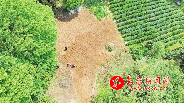 茶園里,茶農(nóng)們正在翻耕鋤草。茶花次第開放,白中帶黃、星星點點,在茶樹間若隱若現(xiàn),仿佛綠毯綴上了飾品,惹人喜愛。李靜隨即開始了短視頻拍攝。