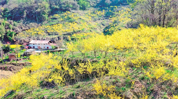 “滿目金黃香百里,一方春色醉千山!标柎喝拢前倩幤G之時(shí),漢濱區(qū)譚壩鎮(zhèn)前河社區(qū)誠鑫現(xiàn)代農(nóng)業(yè)園內(nèi),百畝連翹花迎著春風(fēng),肆意綻放,構(gòu)成一幅金色的生態(tài)……