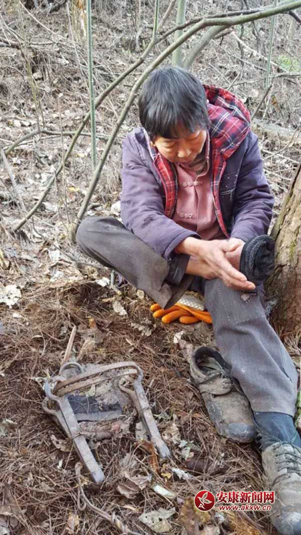 村民肖昌蘭告訴記者,當(dāng)天上午,她和往常一樣早早的上山采摘野生獼猴桃換錢補(bǔ)貼家用。看到眼前這一片叢林中的獼猴桃并不是很多,她就想再往上走一段路,突然感覺(jué)右腳被什么東西夾住了。