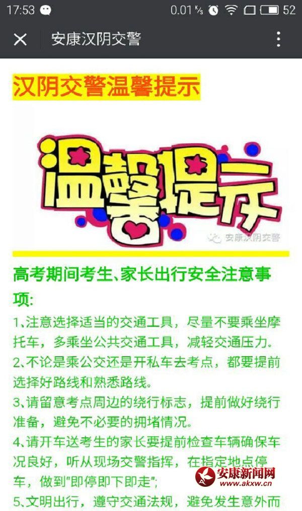 漢陰交警在此祝愿廣大莘莘學子圓夢高考,金榜題名!祝各位駕駛員朋友及交通參與者生活愉快,平安出行!