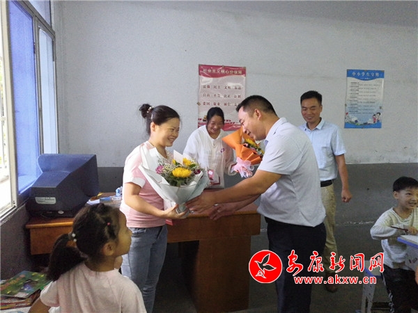 每到一所學(xué)校,校委會(huì)成員親手為教師們獻(xiàn)上鮮花、口杯等禮物,并與大家親切交談,詳細(xì)了解學(xué)校教學(xué)活動(dòng)開展情況和教師們的生活、工作情況,同時(shí)向辛勤耕耘,默默付出的教師們致以崇高的敬意和真摯的祝福。