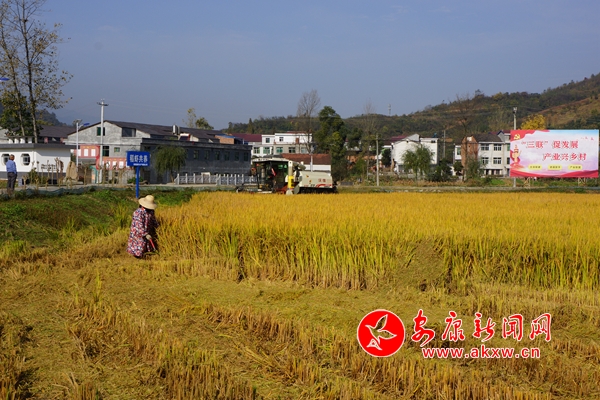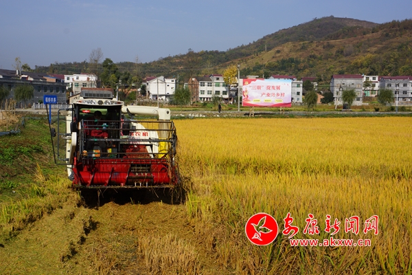 本網(wǎng)訊 (通訊員 黃小柳 晏彬)立冬之日,走進漢陰縣雙乳鎮(zhèn)江河村,只見那金色的稻田旁鄉(xiāng)村小路蜿蜒而去,兩岸小樓拔地而起。風兒輕拂,金黃稻穗低頭搖擺,稻香股股卷入鼻孔使人傾醉,稻田里的收割機唱著歡歌,正在稻田里來回穿梭,將沉甸甸的稻穗攬入“懷中”,為全年的辛勞付出畫上圓滿句號。