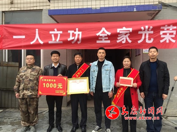 一行人先后來到城關(guān)鎮(zhèn)現(xiàn)役軍人劉家軍家中,為其送去“三等功”喜報和慰問金,對現(xiàn)役軍人劉家軍取得的榮譽(yù)表示祝賀,并詳細(xì)詢問了劉家軍家屬的生活狀況,感謝他們?yōu)椴筷、為祖國培養(yǎng)了優(yōu)秀的軍事人才,并鼓勵他們要一如既往地支持軍人在部隊安心服役,支持國防建設(shè),爭取再創(chuàng)佳績。劉家軍的父親接過這份承載著榮譽(yù)的喜報,深情地表示會繼續(xù)做好軍人的堅強(qiáng)后盾,鼓勵孩子在部隊安心服役、建功軍營。