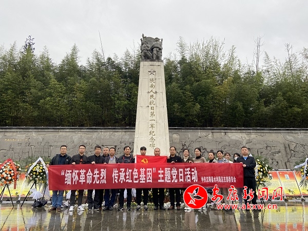 在黨史教育基地陜南人民抗日第一軍紀(jì)念碑前,全體黨員向革命先烈(輩)們致敬,頷首默哀、敬獻花束,“我志愿加入中國共產(chǎn)黨,擁護黨的綱領(lǐng)……”這鏗鏘有力的誓詞穿透了細雨蒙蒙。