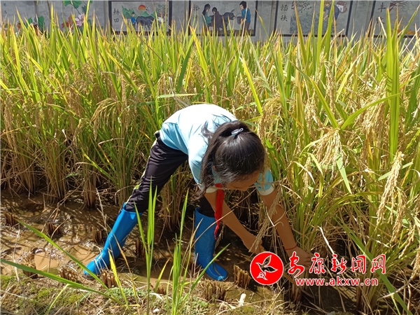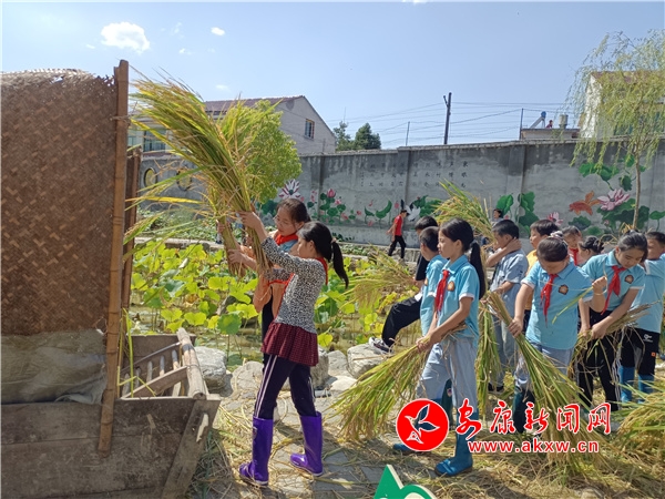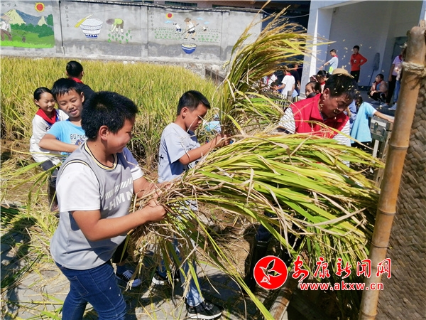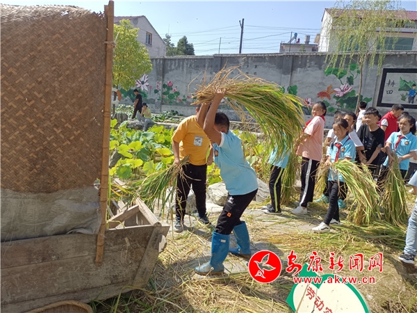 “同學(xué)們,你們看那一串串飽滿的稻穗掛在枝頭,長(zhǎng)得多喜人吶!現(xiàn)在我們要去收獲自己辛勤耕耘的勞動(dòng)果實(shí)了!大家要認(rèn)真學(xué)習(xí)怎樣割稻子,打稻谷,聽從指揮,注意安全……”“老師,我要參與,我不怕累。”“我去年就學(xué)會(huì)了割稻子,今年我要學(xué)會(huì)打稻谷!”“我在電視上見過,這個(gè)打谷子的工具歷史可悠久了。”