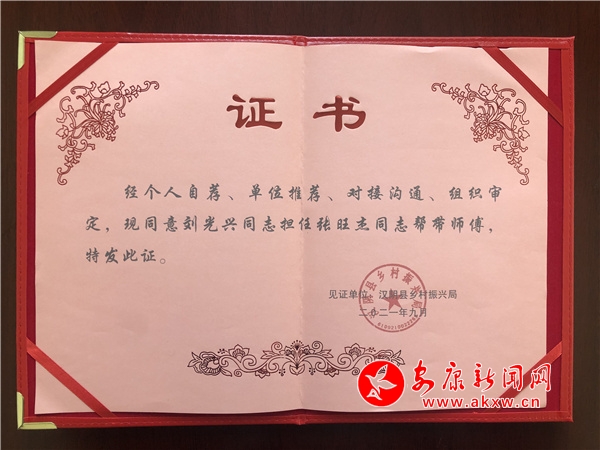 9月初,漢陰鄉(xiāng)村振興工作領(lǐng)導(dǎo)小組要求明確全縣派駐的第一書記和駐村隊(duì)員實(shí)行“師傅幫帶”,接到通知后我心里竊喜,打定主意一定要“拜”軍壩村黨總支劉光興同志為師傅。然而在我走到劉總支面前提及此事時(shí),平時(shí)和藹可親的總支瞬間變得深沉嚴(yán)肅起來(lái),沉默了幾秒后強(qiáng)調(diào)要報(bào)請(qǐng)上級(jí)部門批準(zhǔn)才答應(yīng)。這個(gè)舉動(dòng)著實(shí)讓我犯嘀咕甚至還有點(diǎn)失望,內(nèi)心想著是不是劉總支不想帶我或者看不上我這個(gè)徒弟?按照縣上統(tǒng)一安排,很快就組織了“師傅幫帶”集中培訓(xùn),發(fā)放證書,并對(duì)師傅和徒弟分別提出考核獎(jiǎng)懲 ?此拼耸马樌沓烧,我在工作中叫總支,生活中叫師傅,沒(méi)有一點(diǎn)違和感。
