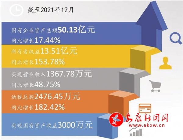 國有企業(yè)的發(fā)力,承接了市場缺位補位的經(jīng)營活動,大大助推了縣域重點項目和民生實事建設,有力支持了脫貧攻堅,保障了群眾物質(zhì)文化需求。截至2021年12月,縣屬國有企業(yè)總資產(chǎn)50.13億元,同比增長17.44%,所有者權(quán)益13.51億元,同比增長153.78%;實現(xiàn)營業(yè)收入1367.78萬元,同比增長48.75%;納稅總額2476.45萬元,同比增長182.42%;實現(xiàn)國有資產(chǎn)收益3000萬元。