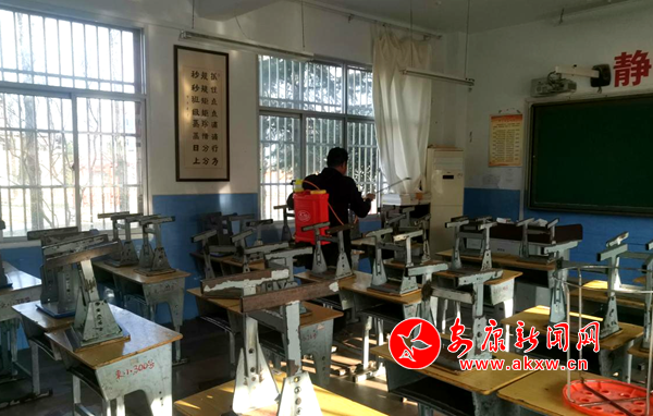 王懷軍為學(xué)生活動(dòng)場所消毒 劉彩霞 攝