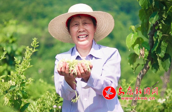 “我們?nèi)ツ昃驮谶@里摘金銀花,今年我們又來(lái)這里摘,老板也對(duì)我們好,我們也很滿意,一天能賺100多塊錢,我就住在這附近的,孫子也照看了。”三柳村村民謝千翠說(shuō)。